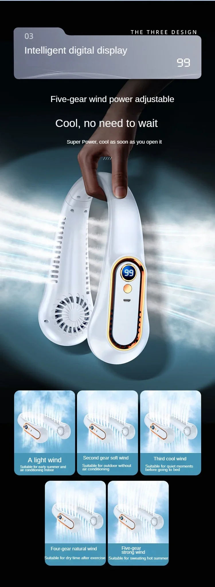 New Halter Fan USB Charging Portable Small Fan Student Office Sports Digital Display Halter Fan